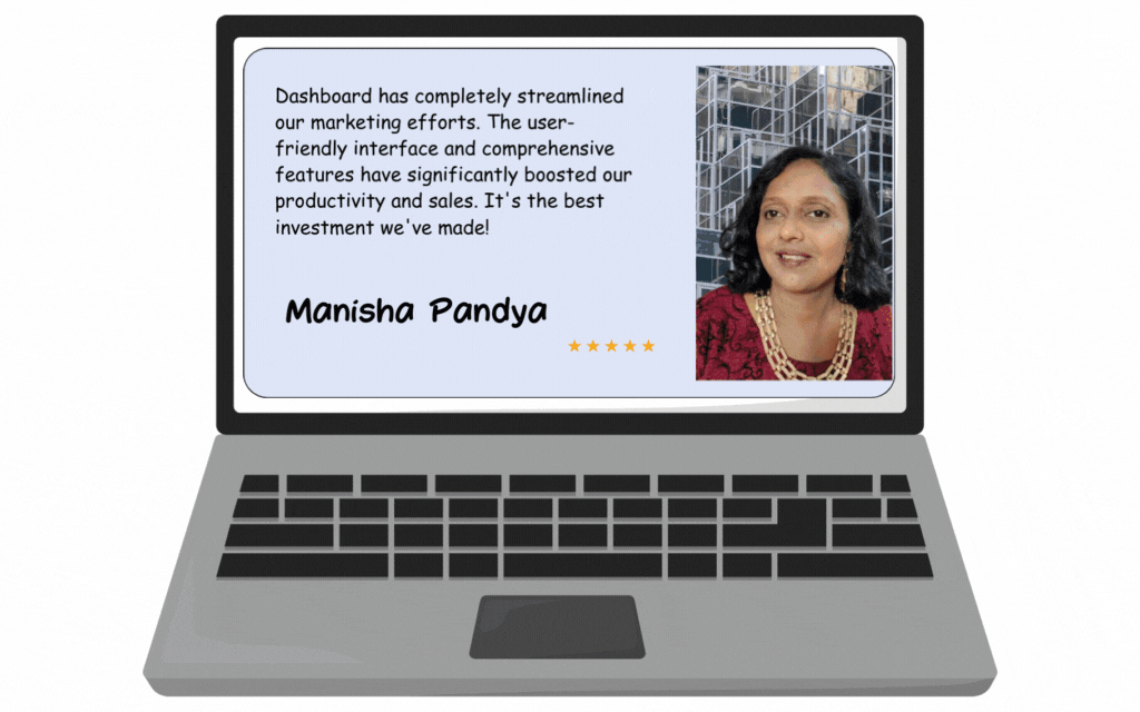 "Dashboard has revolutionized our sales and marketing! The all-in-one platform is user-friendly, saving us time and boosting productivity. With integrated CRM, email marketing, social media management, and analytics, we manage everything in one place. Dashboard is a game-changer for any business. Highly recommended!"